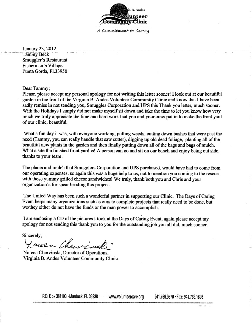 Volunteers from Smuggler’s and UPS participated in the United Way Day of Caring Event to help beautify the Virginia B. Andes Volunteer Community Clinic.